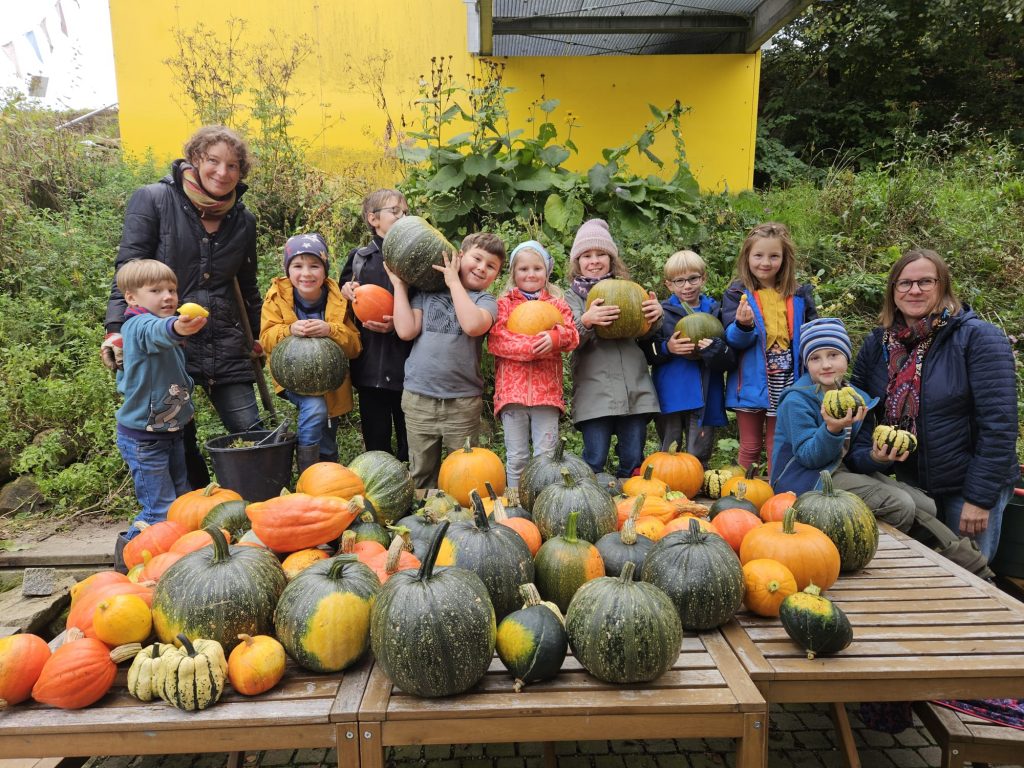 Der Herbst ist eine ambivalente Jahreszeit. Die einen trauern noch dem Sommer nach, die anderen erfreuen sich schon der Farben, des Kamins, des Tees und der Ernte. Nachdem es Mittwoch Nacht bereits den ersten Frost gab, ernteten die Ilztalschüler heute die selbst gepflanzten Kürbisse. Zwischen winzigen Kürbissen mit einem Umfang von wenigen Zentimetern, bis zu großen Brechern von fast 50 Zentimetern war alles dabei.