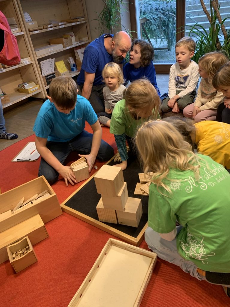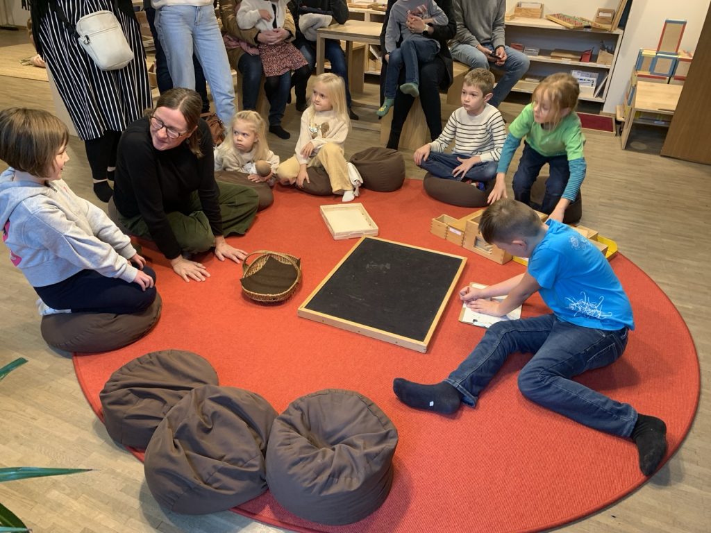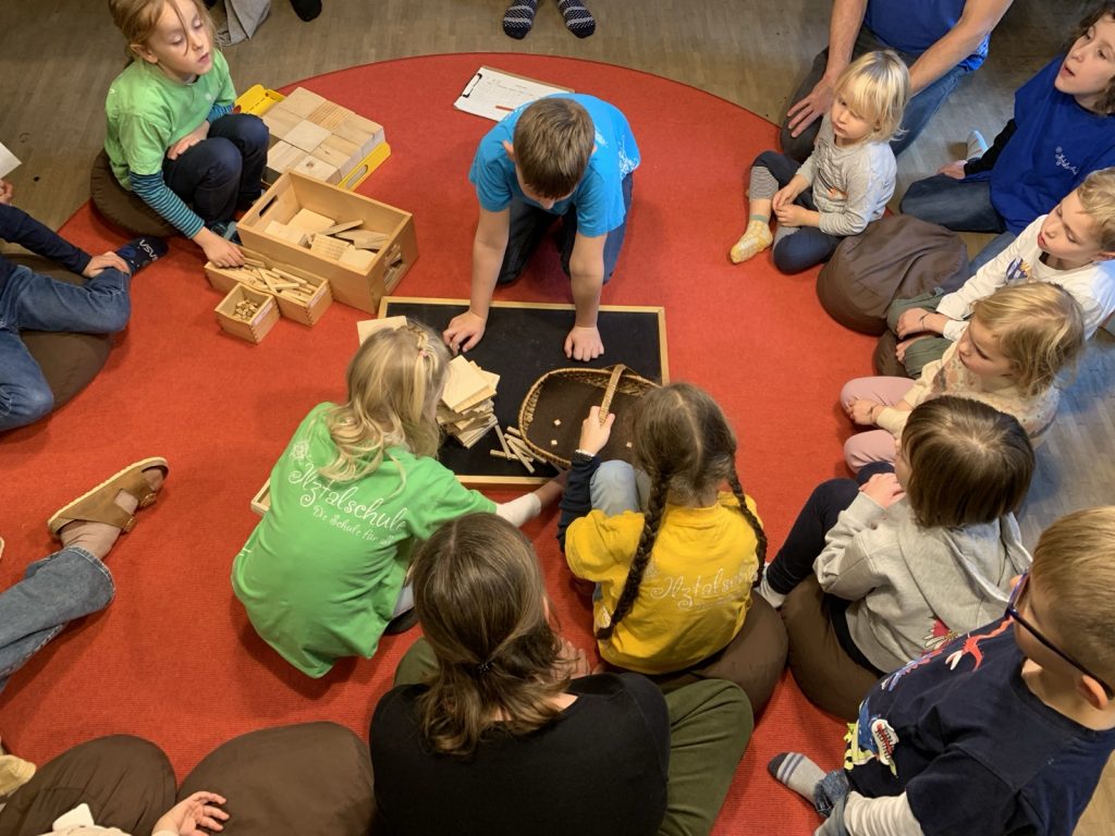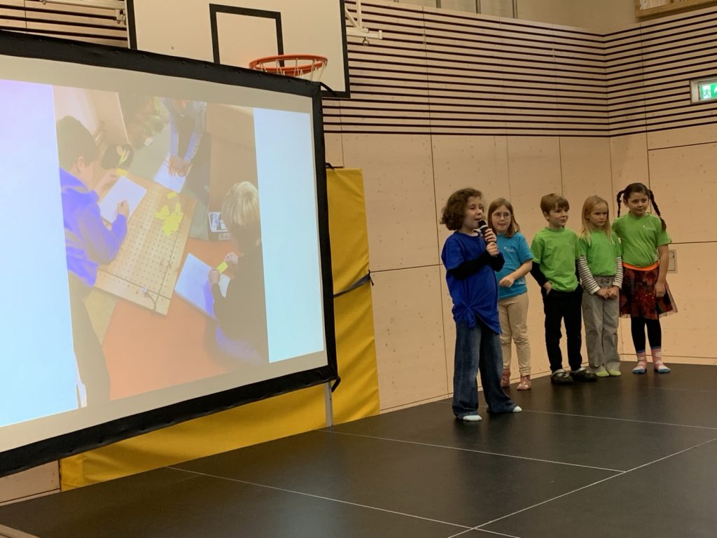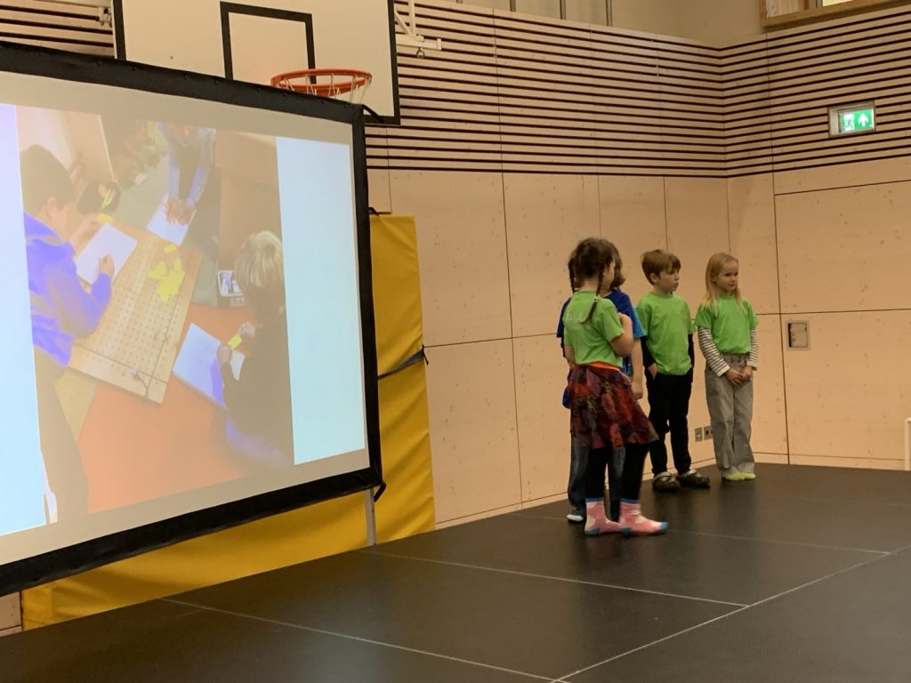 Mit welchem Material die Kinder bei uns lernen zeigten zwei Kinder- Teams anschaulich mit dem „Land der Wortarten“ und einem „Schätzspiel“.